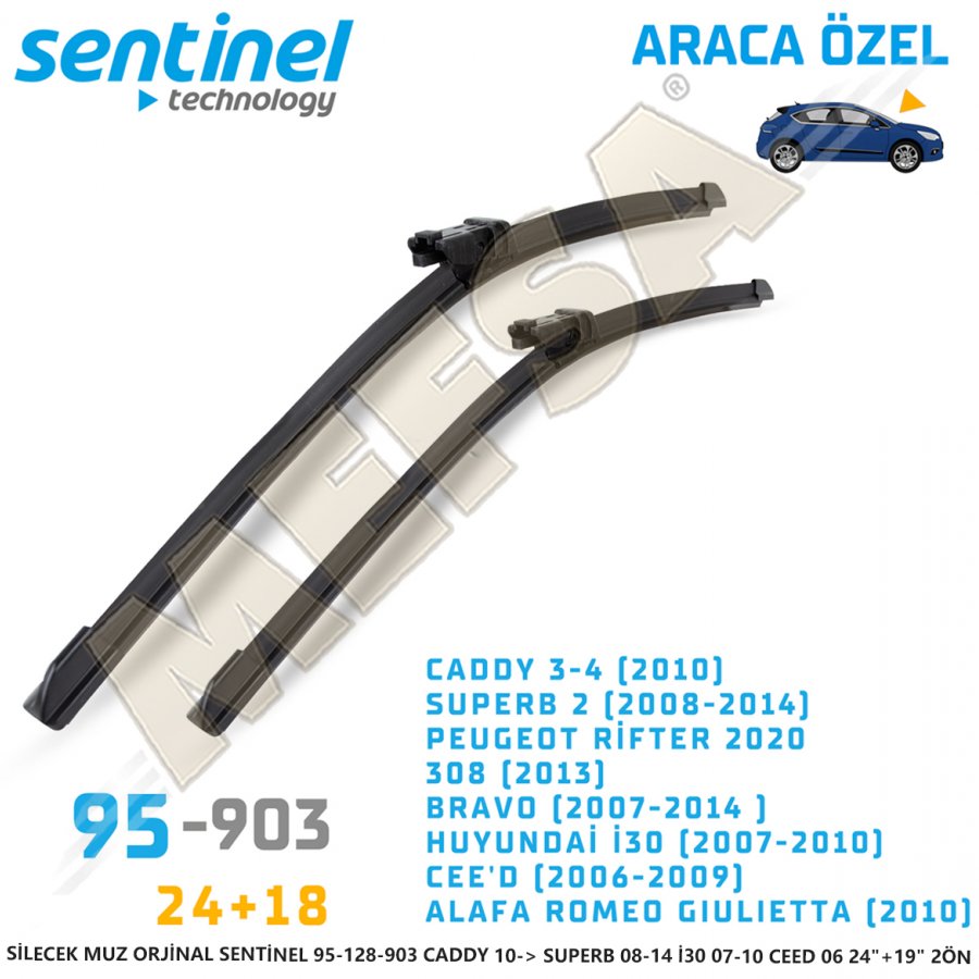SİLECEK MUZ ORJİNAL SENTİNEL 95-128-903 CADDY 10-> SUPERB 08-14 İ30 07-10 CEED 06 24"+19" 2ÖN