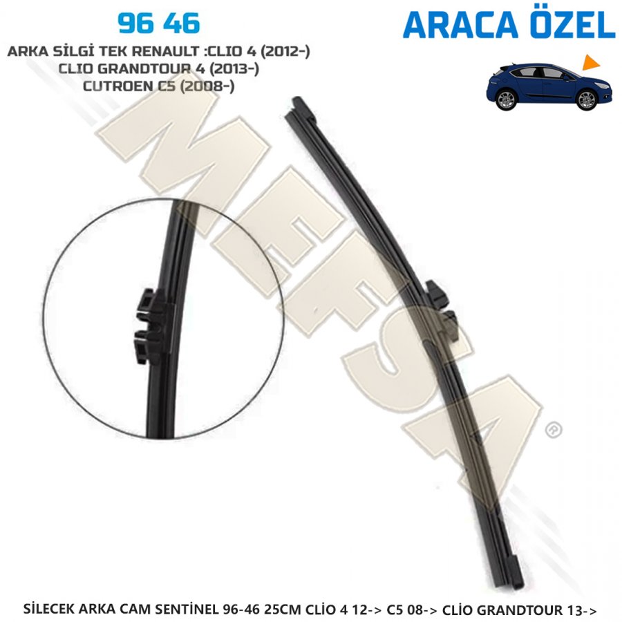 • SİLECEK ARKA CAM SENTİNEL 96-46 25CM CLİO 4 12-> C5 08-> CLİO GRANDTOUR 13->