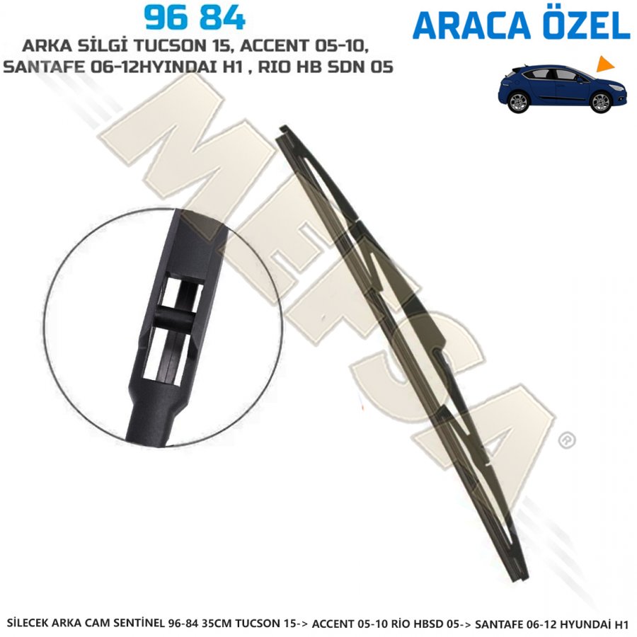 • SİLECEK ARKA CAM SENTİNEL 96-84 35CM TUCSON 15-> ACCENT 05-10 RİO HBSD 05-> SANTAFE 06-12 HYUNDAİ H1