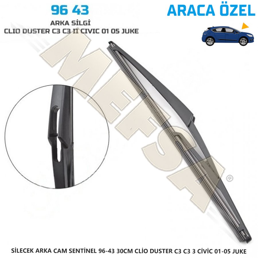 • SİLECEK ARKA CAM SENTİNEL 96-43 30CM CLİO DUSTER C3 C3 3 CİVİC 01-05 JUKE