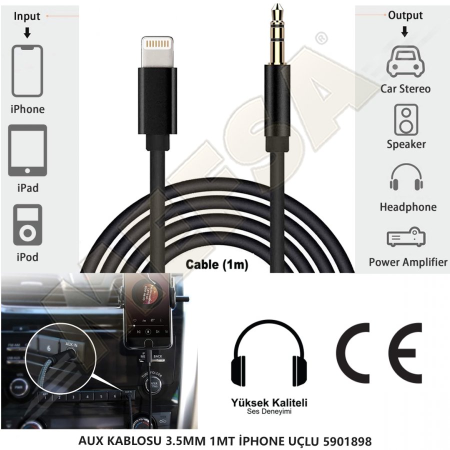 AUX KABLOSU 3.5MM 1MT İPHONE UÇLU 5901898